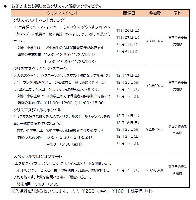 【クリスマスイベント詳細】