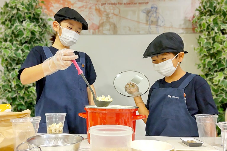 体験内容:食品ロスの現状を学び、サーキュラーフードとして注目されている食用コオロギ(パウダー)を利用して、オリジナルポップコーンを作る