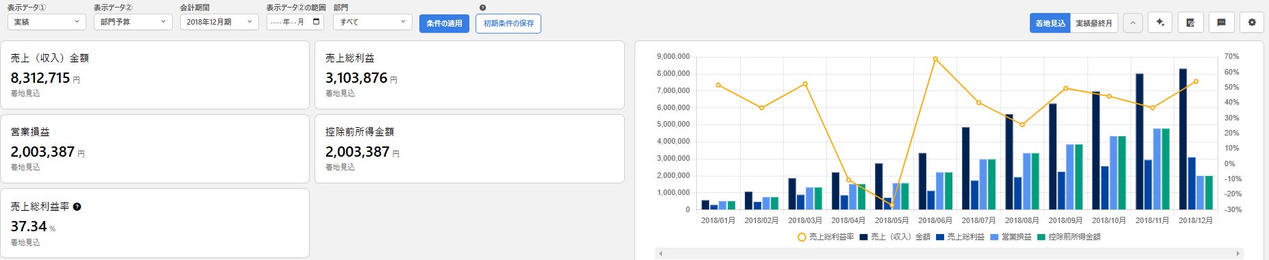 『Manageboard』の標準レポート機能を活用することで、損益計算書の決算見通しを立てられるほか、予実分析を行うことができ、さらに損益計算書と貸借対照表を年次で比較することも可能となります。これにより、中期的な経営状況をより正確に把握することができます。