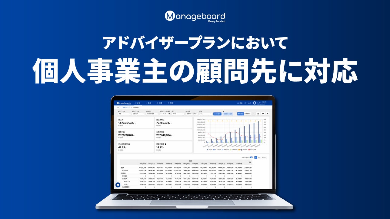 『Manageboard』(https://service.manageboard.jp/)を提供する株式会社ナレッジラボ(代表取締役会長:国見 英嗣 代表取締役CEO:門出 祐介、本社:大阪府大阪市、以下「ナレッジラボ」)は、管理会計プラットフォーム『Manageboard』のアドバイザープランにおいて、個人事業主の顧問先への対応を開始しました。