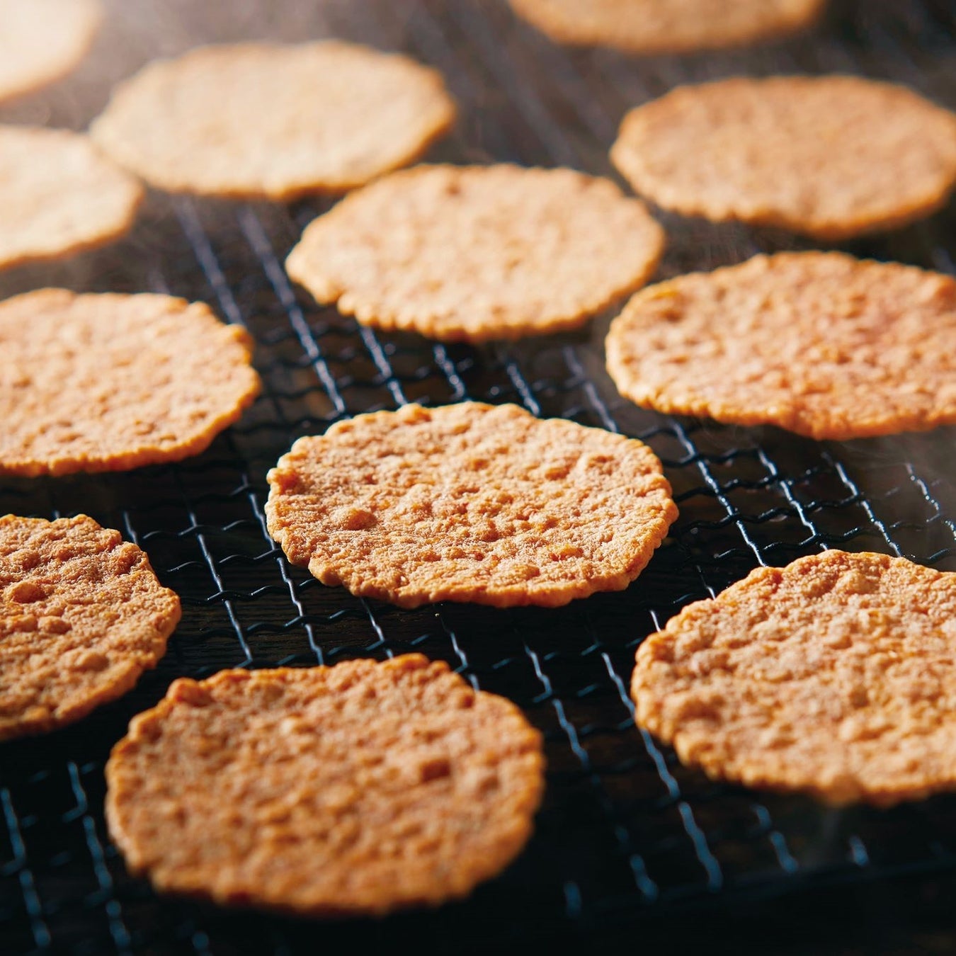 この店舗では、併設の工房で焼き上げた、焼きたての海老せんべい〈ゆかり〉を毎日販売。焼きたてならではの格別の香ばしさを味わっていただけます。