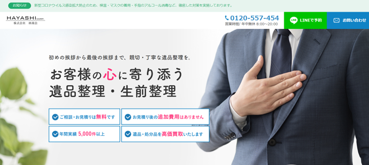 生前・遺品整理や相続に関するお悩みがございましたら、年間実績5,000件以上を誇る林商会にお任せください。