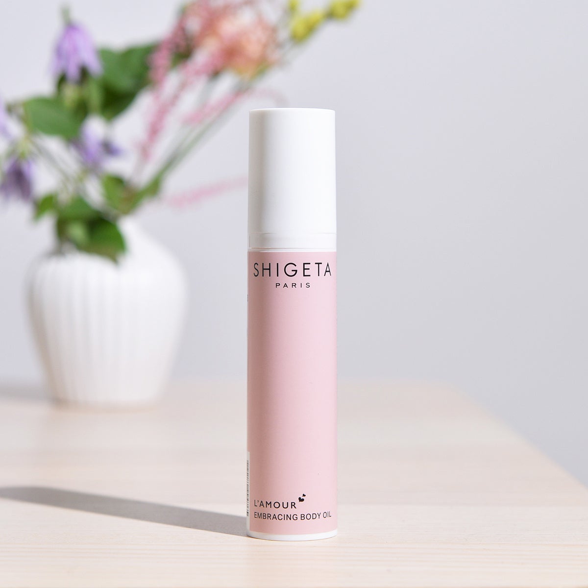 SHIGETA PARISでは、パリの自社工場で、可能な限りオーガニック原料にこだわり、成分の抽出方法、製造法、パッケージまで、環境に配慮したオーガニックかつクリーンなプロダクト(エッセンシャルオイル、スキンケア、ボディケア、メイク)を展開しています。オーガニックコスメの世界基準である「コスモス認証」によるクリーンな生産工程を遵守し、フランスで製造されたオーガニック認証製品です。