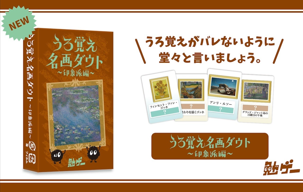 アナログゲームメーカーの株式会社TRYBEは、株式会社キッズプロジェクトと、知育から大学・研究レベルまで“あらゆるジャンルの“勉強”で対決するカードゲームシリーズ『勉ゲー』より、最新作「うろおぼえ名画ダウト 印象派」と「うろおぼえ名画ダウト ポスト印象派」を2026年2月4日(水)に発売いたします。
