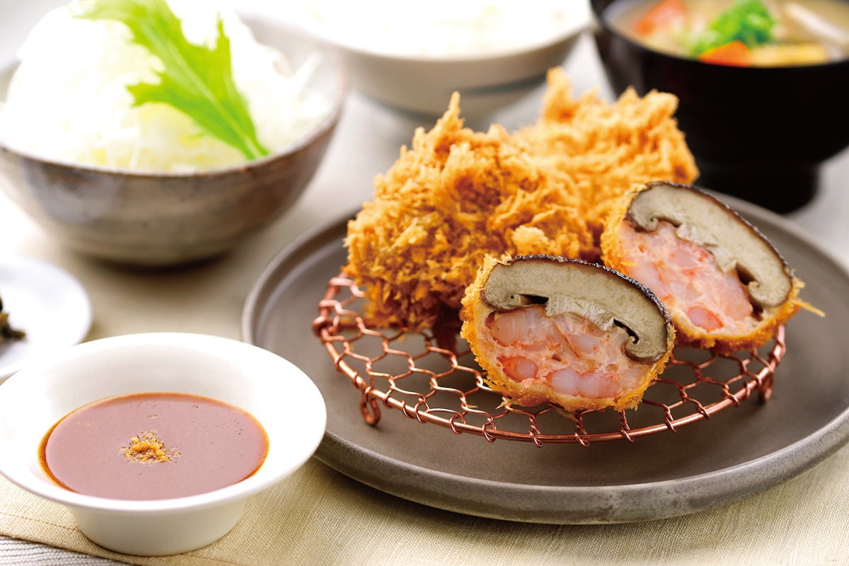 旬の味覚を味わう『大ぶり椎茸の海老しんじょうかつとヒレかつ』