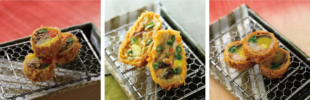 『鮭と木の子、さつま芋の豆乳クリームコロッケ』、『海老とさつま芋の豚巻きかつ』など、
