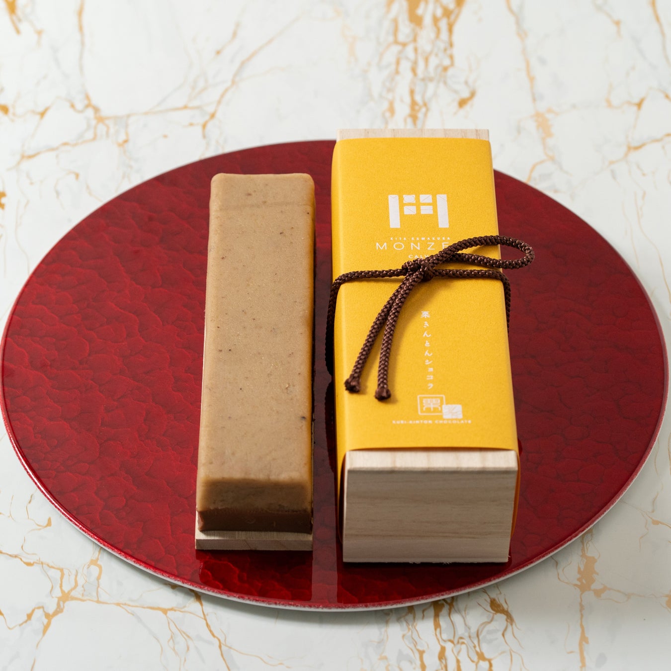 “鎌倉”を愛する2社が協力して開発したコラボレーション商品は、〈CALVA〉の看板商品「栗きんとんショコラ」と同様に木箱に入れ、オリジナルデザインのスリーブを付けてご用意いたします。