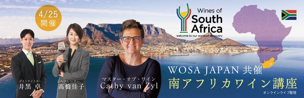 南アフリカワイン協会(WOSA JAPAN)との共催により、夢のコラボレーションが実現! 完全オンライン・全国どこからでも参加可能!4月25日開催決定!