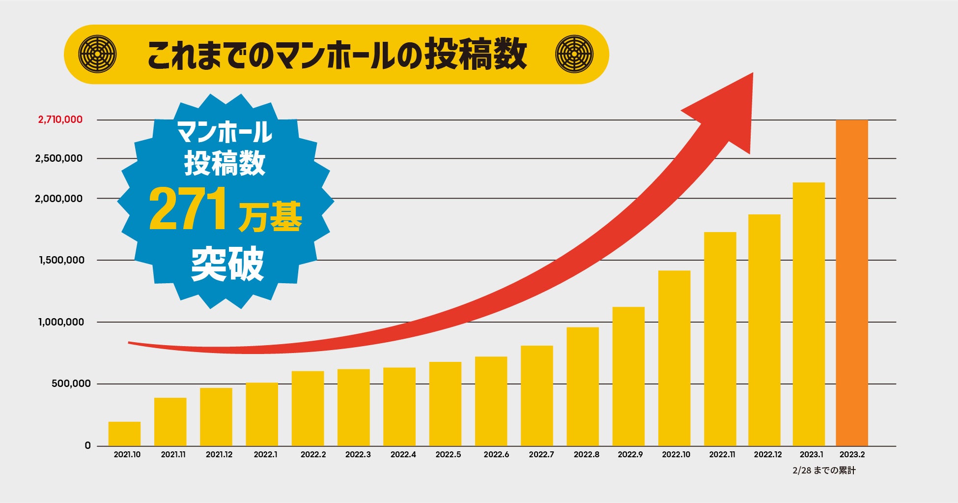 - 市民が集めたマンホール画像は1月から24%増加し、271万基超え。日々の投稿数も引き続き増加!