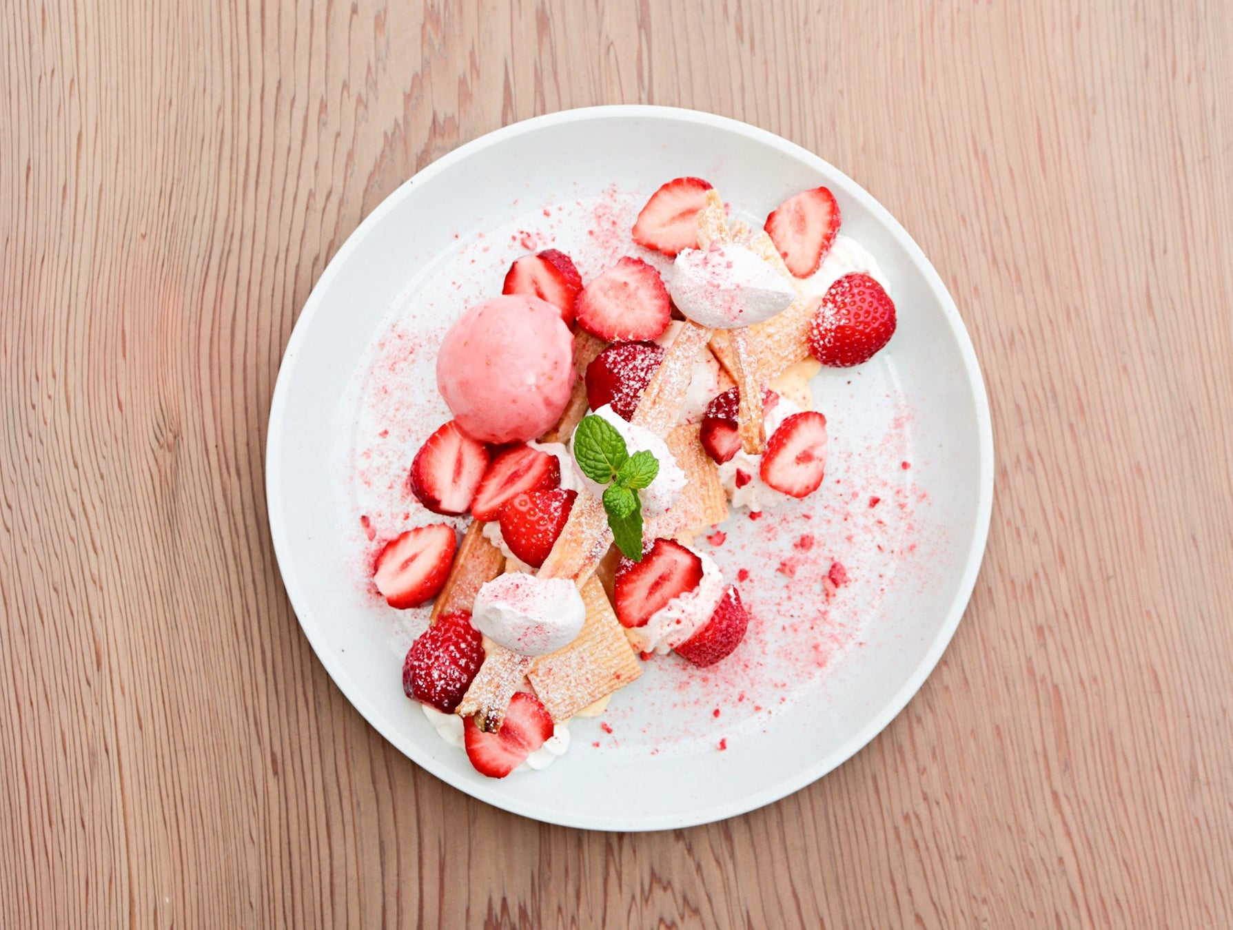 いちごのミルフィーユに見立てた、この季節ならではのスイーツプレートです。