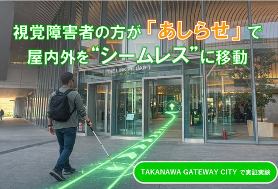 株式会社Ashirase(以下、Ashirase)は、株式会社ルミネ(以下、ルミネ)および東日本旅客鉄道株式会社(以下、JR東日本)と連携し、視覚障害者の方が駅から商業施設まで安心して自立的に移動できる環境づくりを目指し、TAKANAWA GATEWAY CITYにおいて「視覚障害者向け移動サポート」の実証を2026年2月20日(金)・21日(土)に実施します。