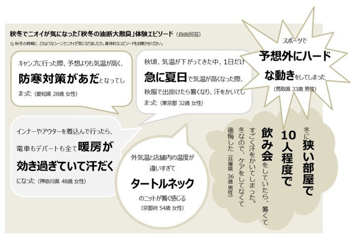 ニオイケアを忘れがちな「秋冬の油断大敵臭」発生シチュエーションにランクイン!