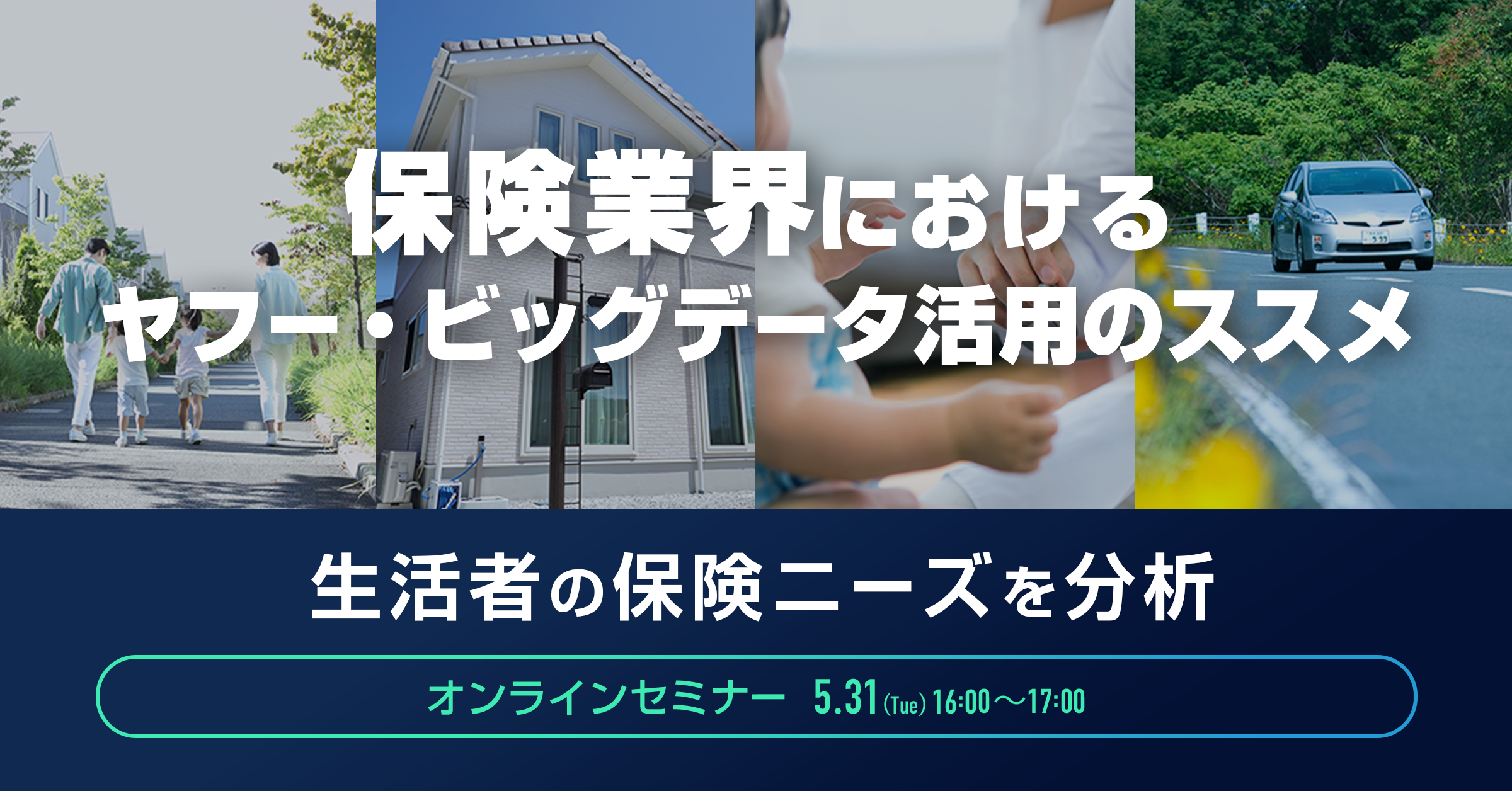 ヤフー株式会社(以下、Yahoo! JAPAN)が提供する事業者向けデータソリューションサービスは、5月31日(火)に“保険業界におけるビッグデータ活用”をテーマとしたオンラインセミナーを開催します。