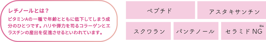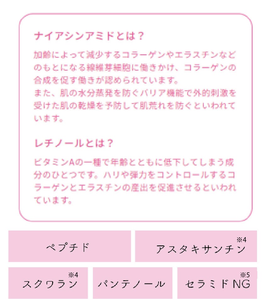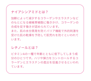 シワ改善有効成分ナイアシンアミドとハリつや成分レチノール配合の