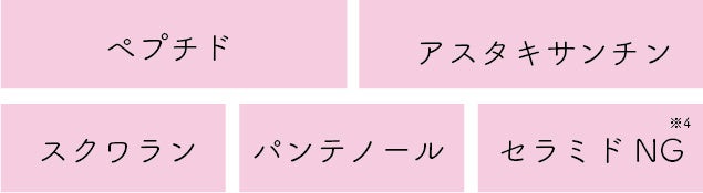 その他にも、韓国コスメで話題の成分ペプチド※4・パンテノール※3、ハリに欠かせないコラーゲン※4とエラスチン※4など、