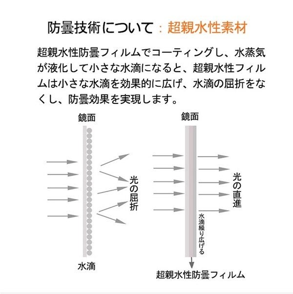 ※1 現地の湿度環境により持続期間に幅があります。バスルームミラーだと48時間