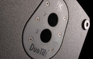 ・フルレンジスピーカーモデルは、2つのポールマウントソケットにより-3°もしくは-7°の角度をつけて設置可能なDuoTilt機構を搭載※。オーディエンスの耳の高さに合わせて角度を簡単に変更できるため、さまざまな場面での設置に対応します。