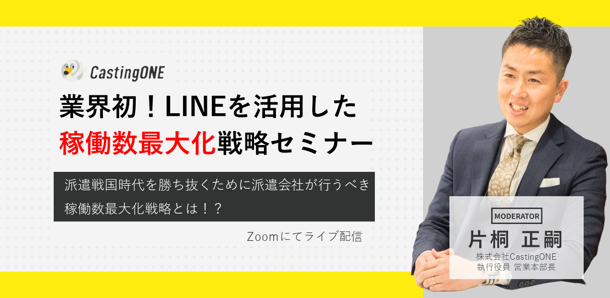 株式会社CastingONE(キャスティングワン、本社:東京都渋谷区、代表取締役:野澤 怜司)は、「業界初!LINEを活用した稼働数最大化戦略セミナー」をテーマに無料セミナー(ウェビナー)を開催します。
