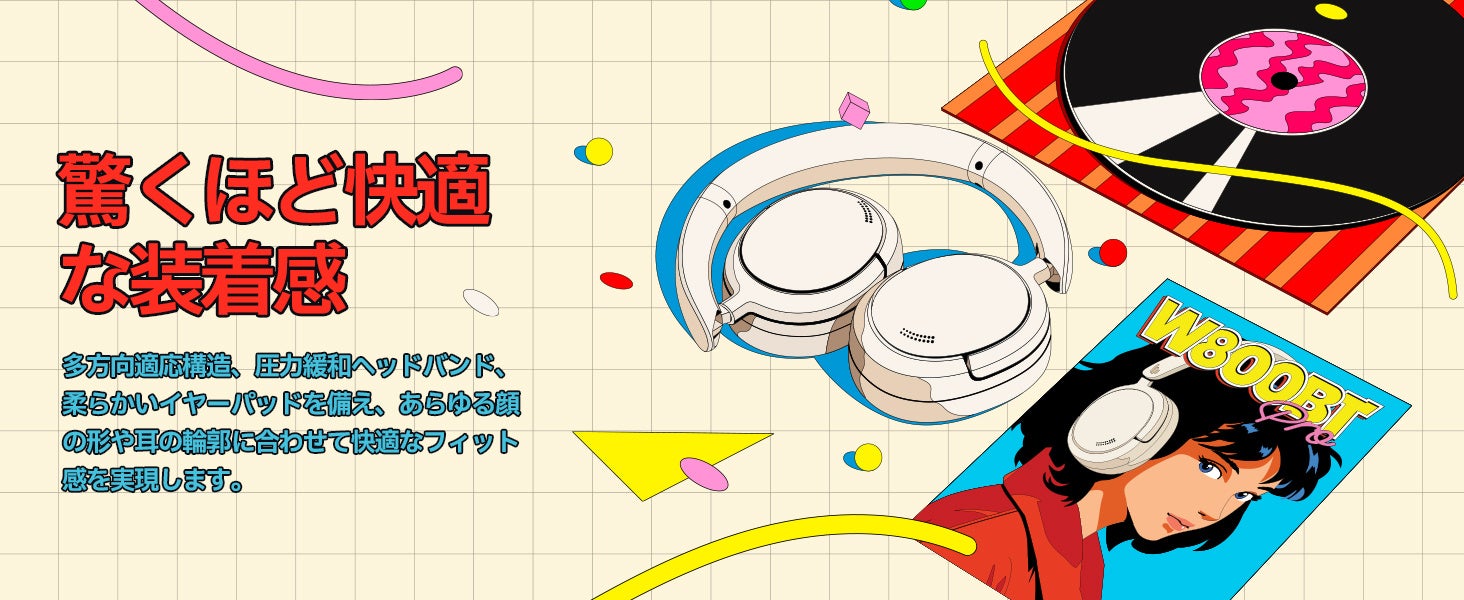 Ardhira Putra氏は、AppleやMTV、Tiger Beerなどの国際的なブランドともコラボを重ね、ポップカルチャーをテーマにした作品で注目されています。彼のアートは、レトロな要素を現代に蘇らせ、80年代・90年代の懐かしさと色彩豊かなデザインを融合させた独自のスタイルが特徴です。 今回のコラボレーションでは、そのユニークなアートワークがW800BT Proのパッケージを彩り、ユーザーに視覚的な楽しみを提供します。