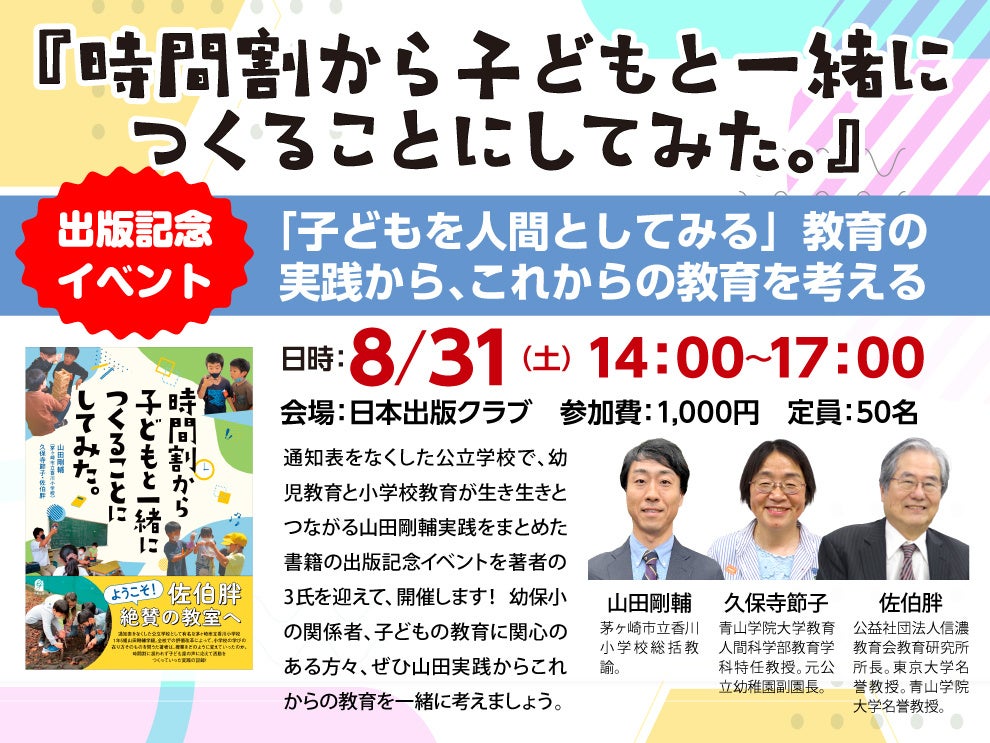 『時間割から子どもと一緒につくることにしてみた。』刊行記念!!山田剛輔・久保寺節子・佐伯胖執筆陣によるスペシャルトークイベント開催決定@東京・神保町【2024/8/31(土)】