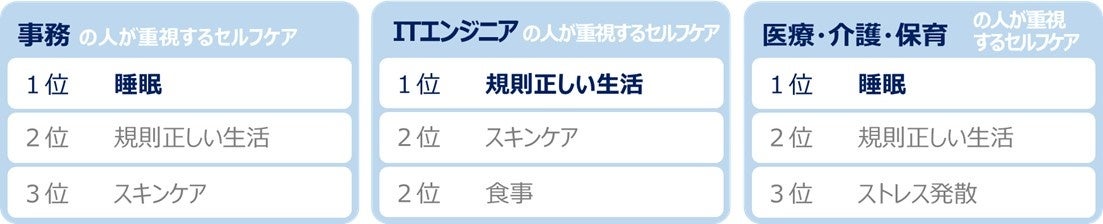 \ PICK UP/ 職業別「最も重視するセルフケア」