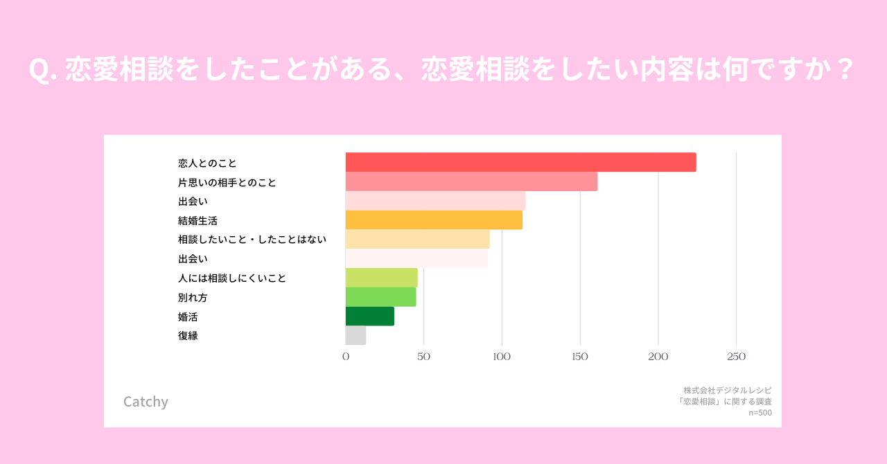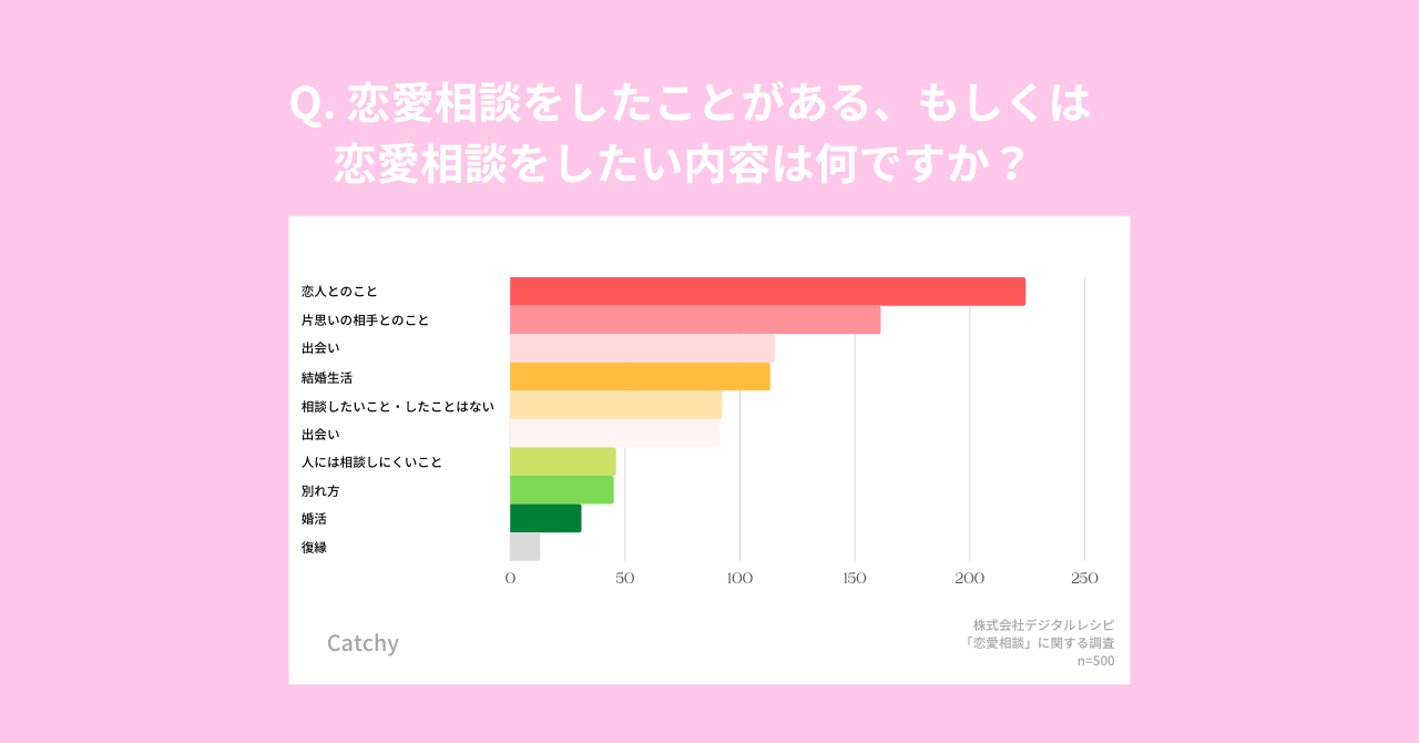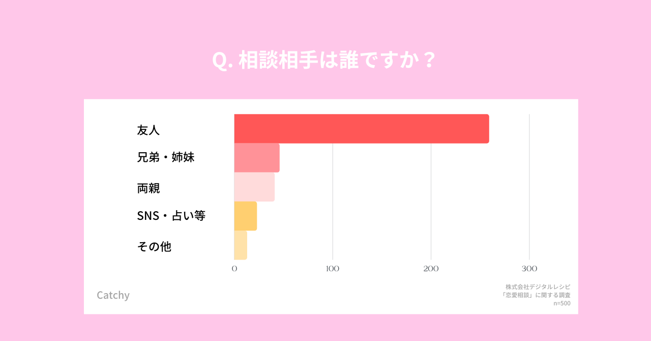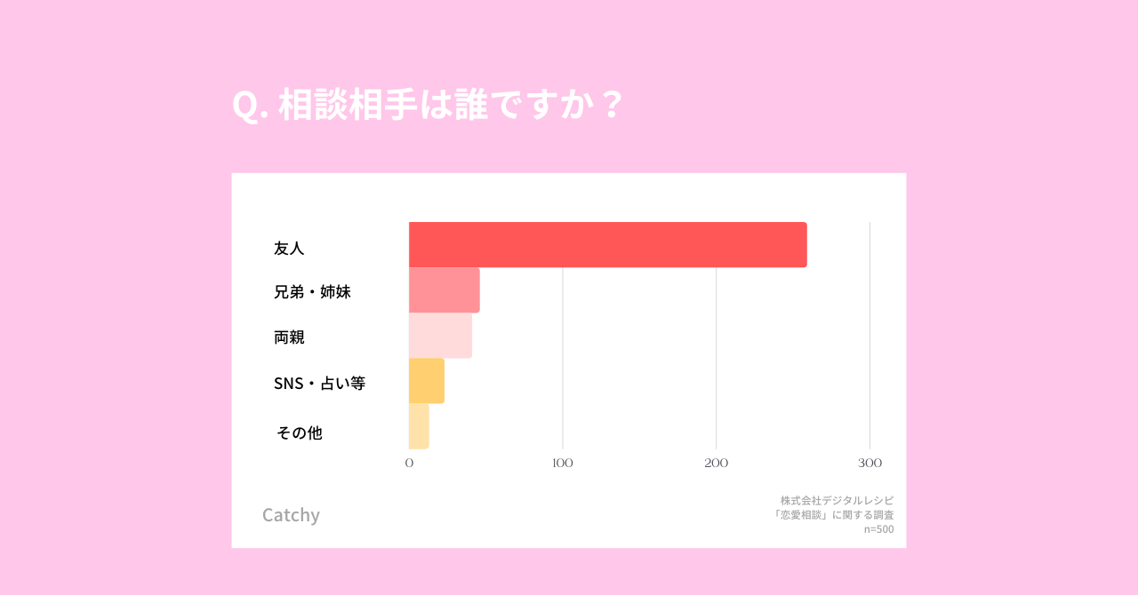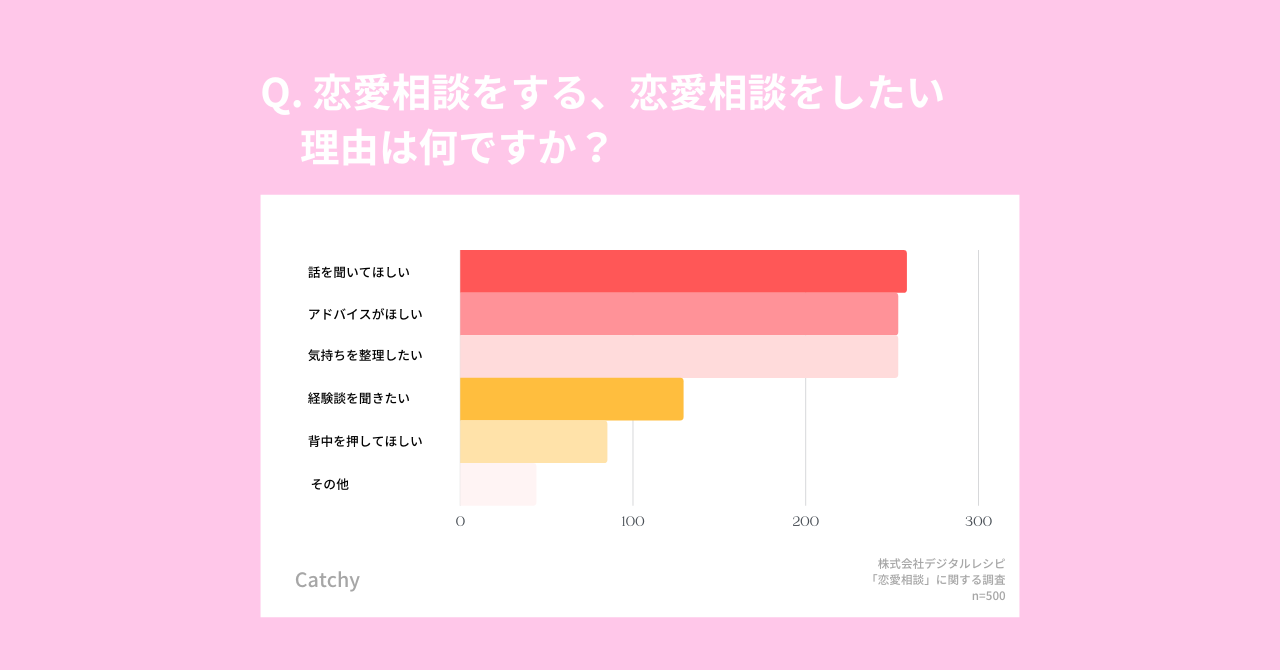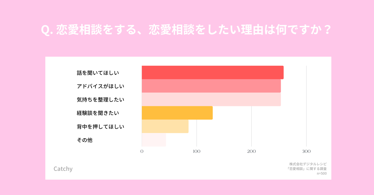 - 約5割の人が恋愛相談に「気持ちの整理」「客観的なアドバイス」を求めている