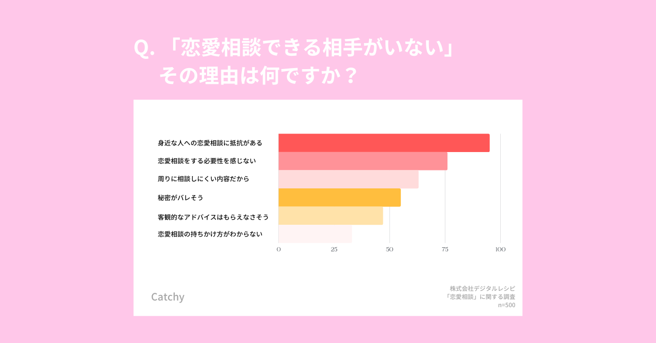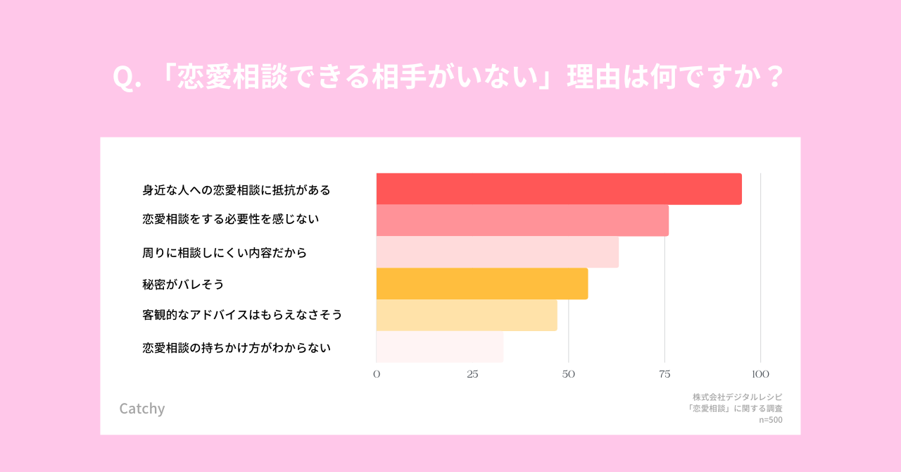 - 恋愛相談ができない理由は「身近な人へ恋愛相談をすることに抵抗がある」がトップに