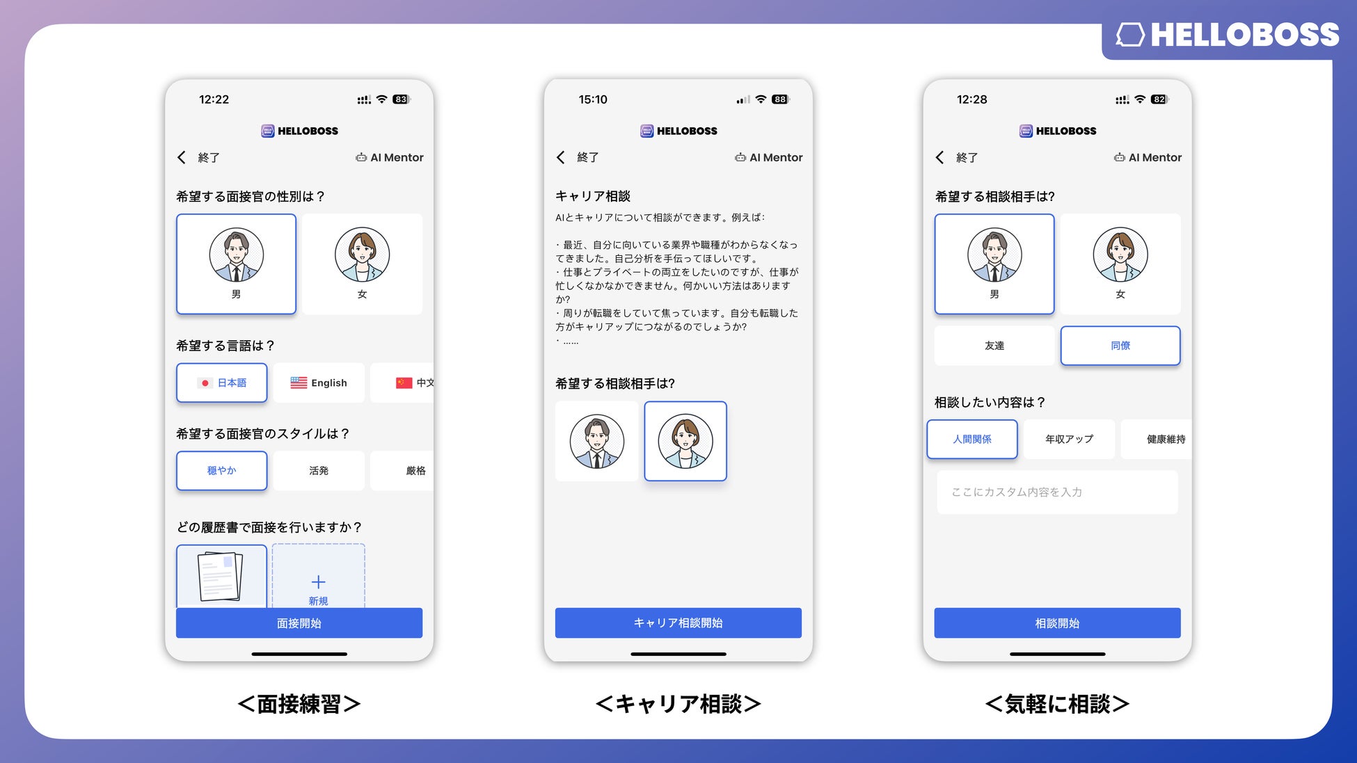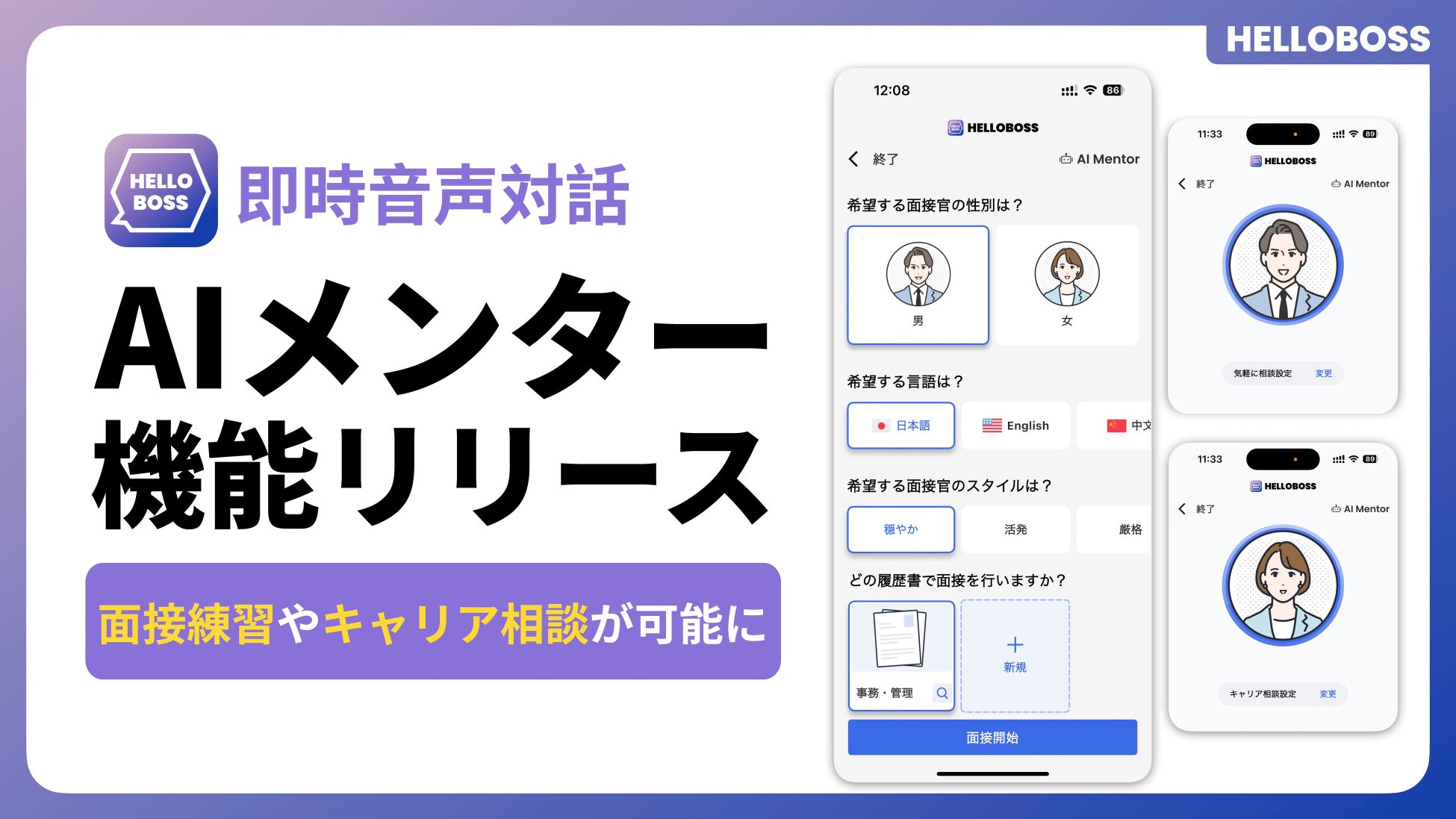 『HelloBoss』、即時音声対話可能なパーソナルAIメンター機能をリリースし、個別最適化された面接練習やキャリア相談が可能に