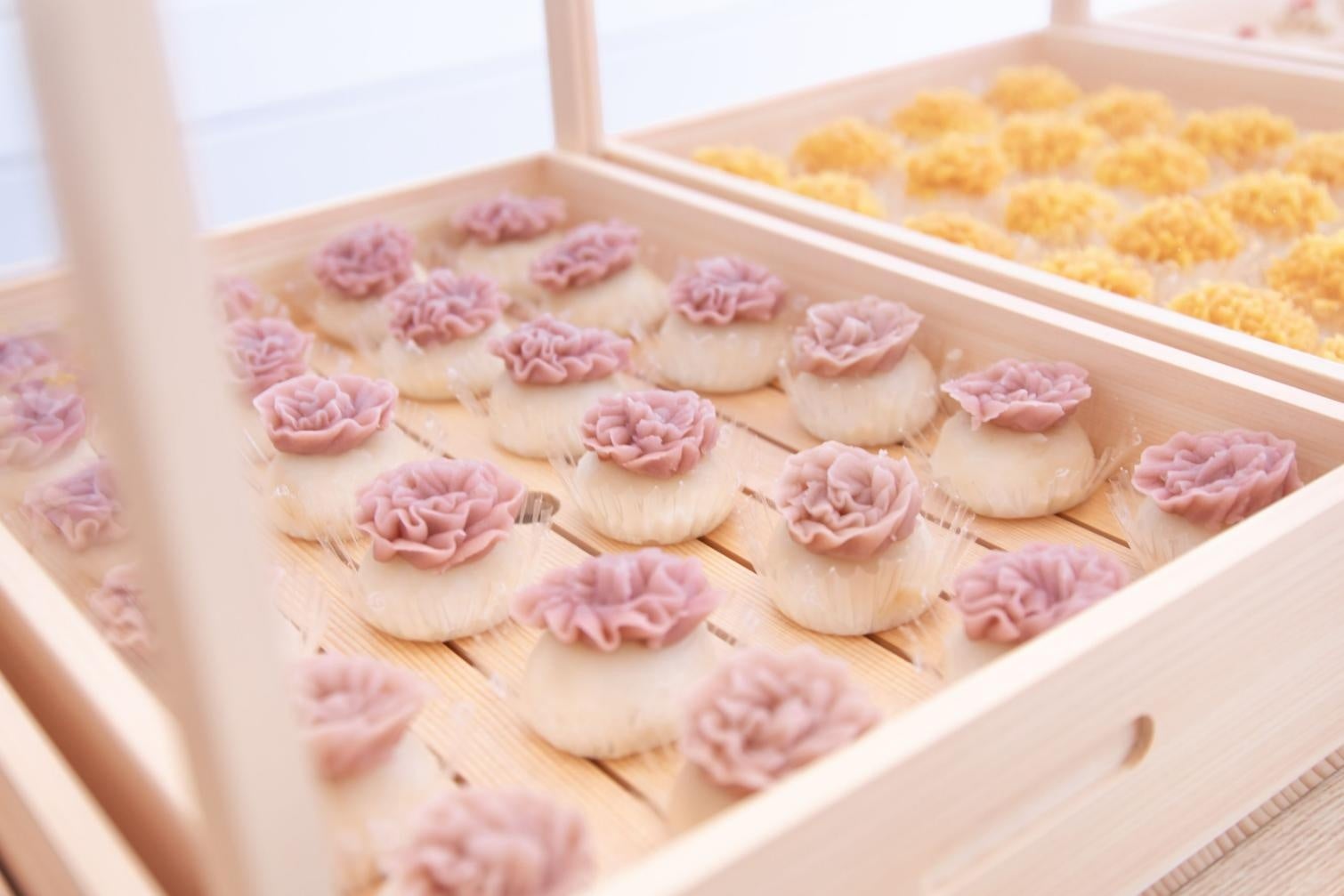 見た目の美しさだけでなく一つ一つのお味にもこだわり、餡は国産の北海道産小豆と手亡豆を使用、