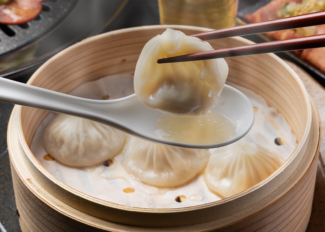 牛タンの食感と極上スープのバランスにこだわり、口のいっぱいに旨みが広がる魅惑の「牛タン小籠包」と、牛すじの豊潤な旨みを後押しするスパイシーで酸味のあるトムヤムクンで仕上げた「トムヤムクン小籠包」。とくに牛肉に精通する【WORLD DINER】が長年研究を重ねて完成させた、牛肉を美味しく食べるための小籠包2種が堂々初登場。 イタリアンのシェフが考案した、【餃子とワイン 果皮と餡】の衣を纏った揚げ餃子「十勝産濃厚味噌バター牛カツ餃子」は、独自にブレンドした味噌と北海道産バターと掛け合わせ、隠し味の6種類のスパイスをプラスした風味豊かな餡がやみつきに。東京初登場となる新メニュー「旨味溢れるコリコリ牛タン餃子」は、塩麹と北海道産昆布の旨味で一晩マリネした牛タンを使用し、深みのある味が楽しめる極上の一品。