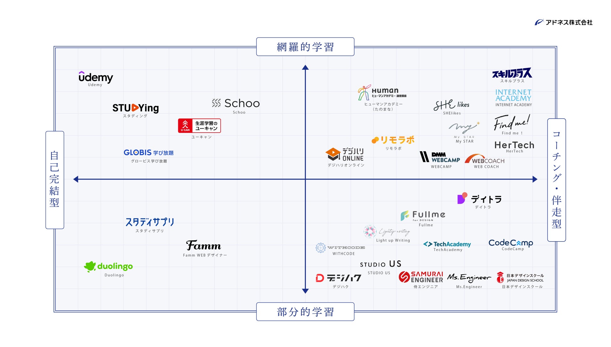 生成AIイノベーションのグローバルリーダー、アドネス株式会社(本社:東京都新宿区四谷、代表取締役社長:三上功太)は、2025年9月20日〜25日に独自調査を実施し、働く女性のキャリア支援の一環として『女性のためのオンライン学習カオスマップ(全30サービス)』を公開しました。
