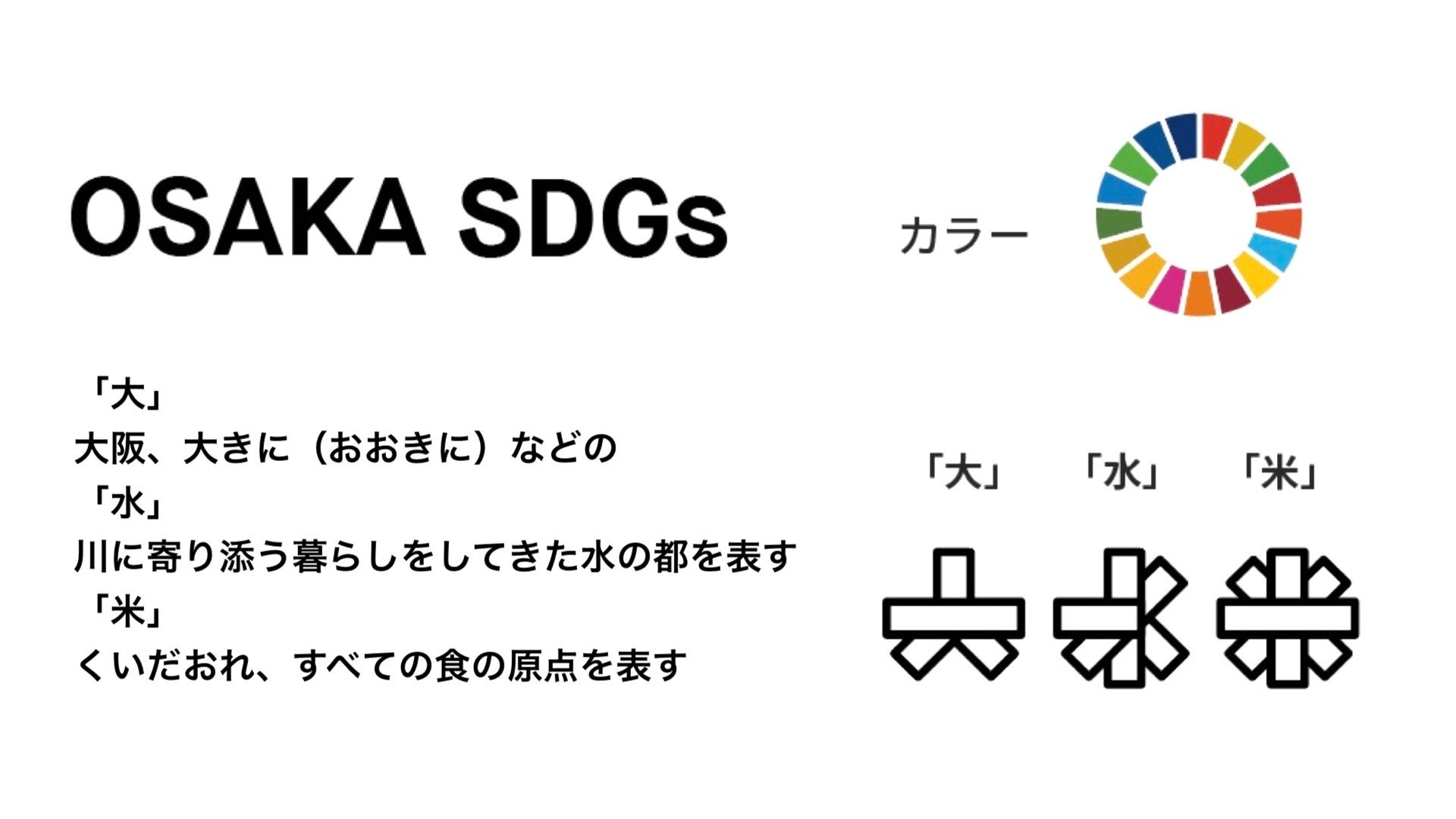 まだ食べられるのに捨てられてしまう食材から新たな価値を生み出し、生産者や食品加工業者の問題を解決する、持続可能な社会の実現をみすえたアップサイクル事業も行っています。たくさんの会社や店舗が、もったいない大阪商人魂で、SDGsな食品をせっかく作っているにもかかわらず、パッと商品を見ただけではSDGsな商品だと伝わらない。この問題を解決するべく、すべての意味を込めた"OSAKA SDGs”のロゴを開発しました。
