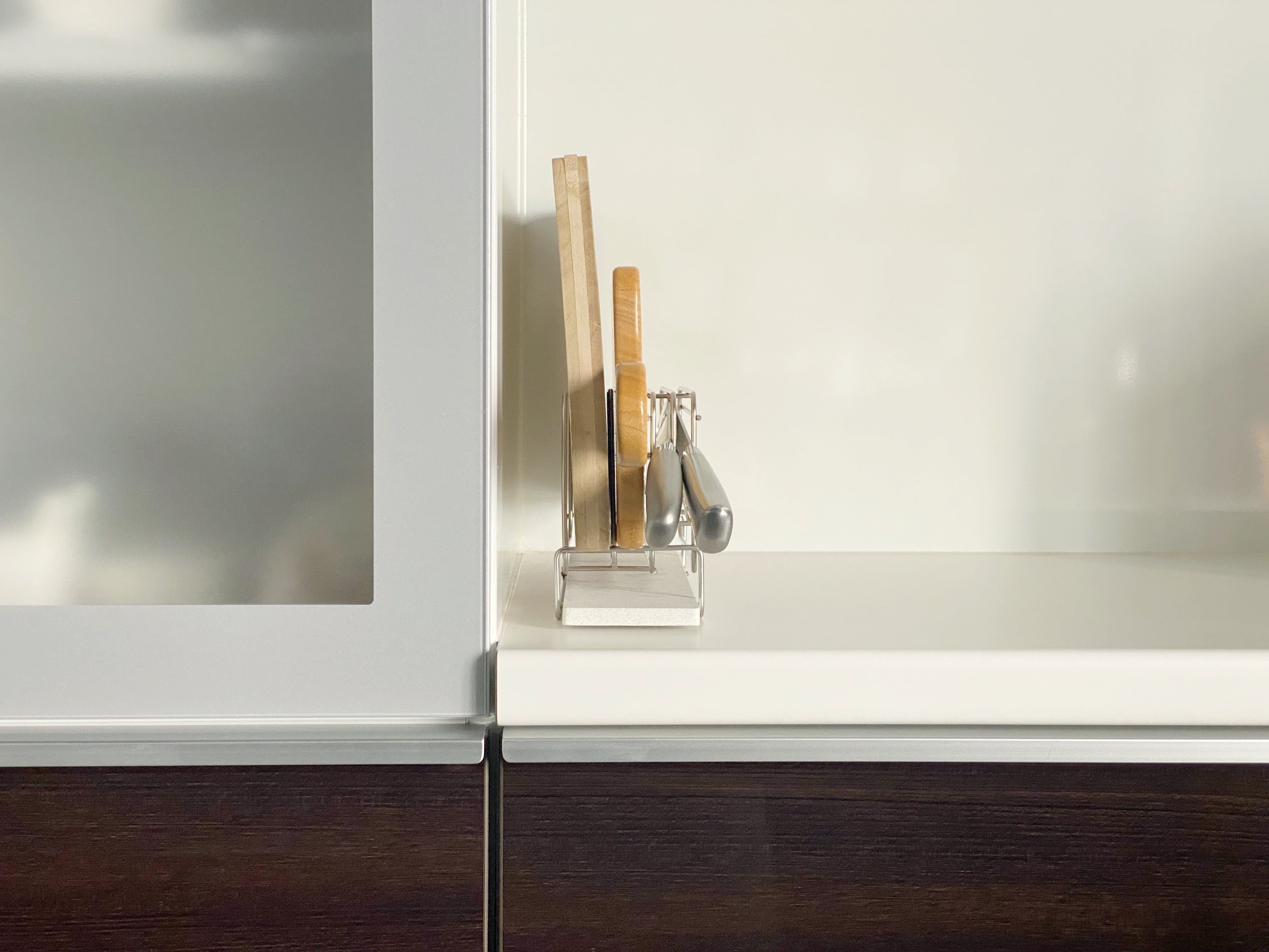 包丁とまな板を置いてもスリムな奥行約8.2cm。