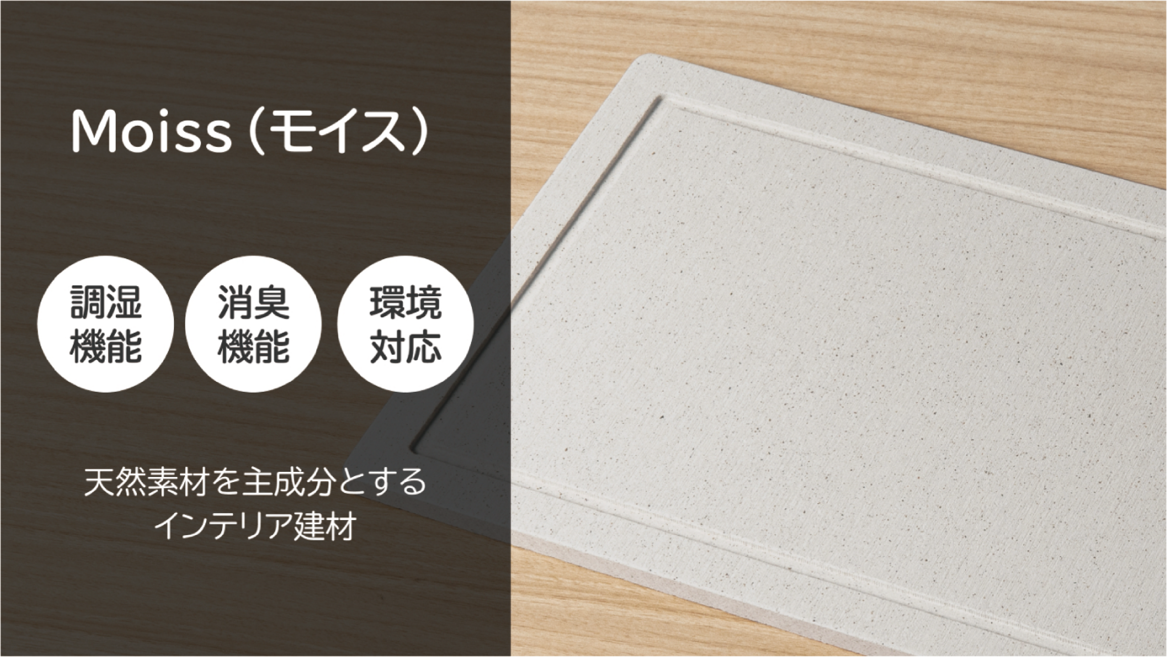 ※モイス(moiss)とは…吸水素材モイスは、天然素材を主成分とするインテリア建材です。バーミキュライトや珪砂を主成分とした、天然鉱物から作られる日本製の建材です。珪藻土同様、水分を吸収し吐き出す性質から、近年バスマットや水切りプレートとしても人気の素材です。吸水が早く、表面の手触りがサラっとしているのも特徴です。安心の日本製。