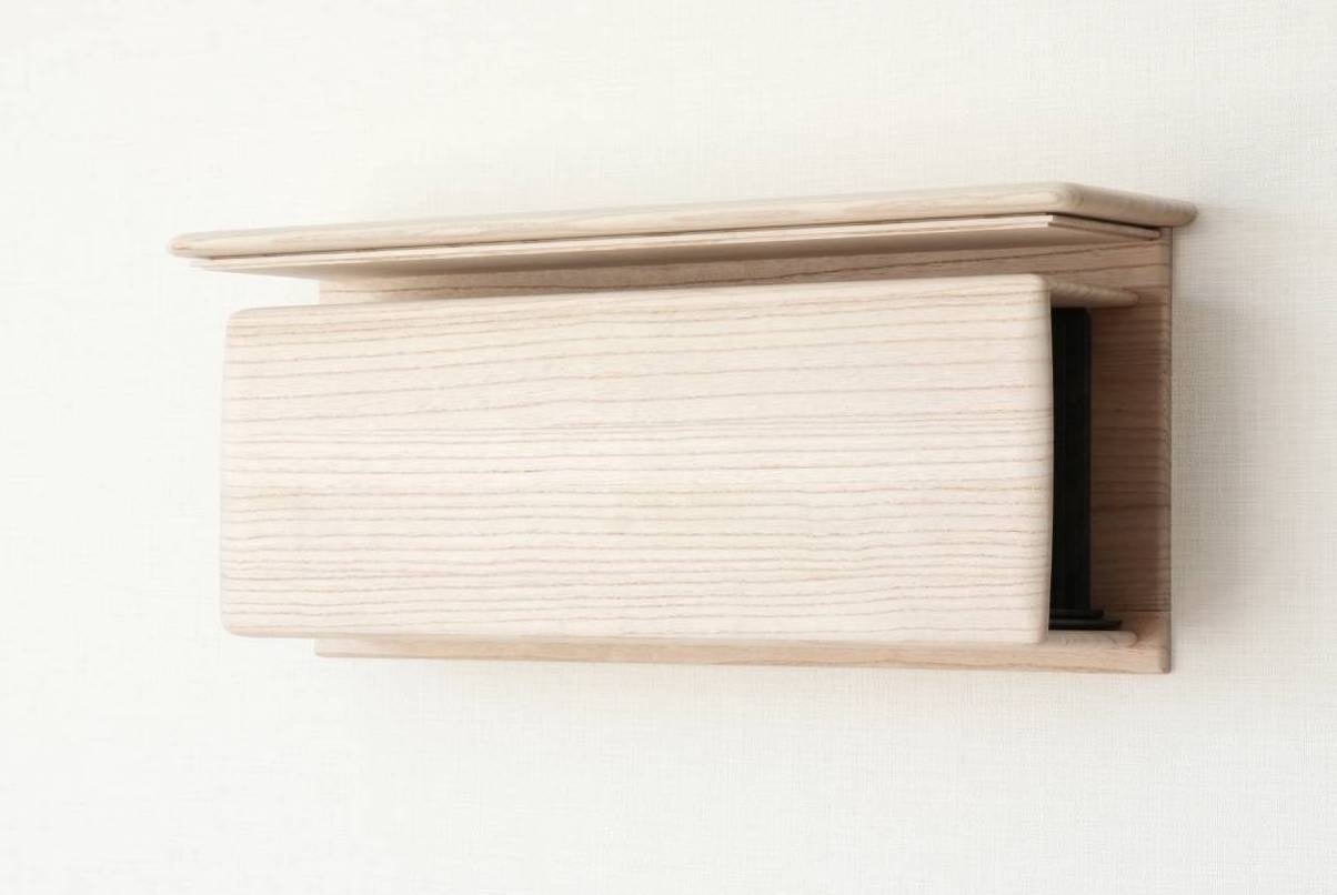 外箱と内箱の間の空間は後板が無く背景が透けて見える「借景」のような厨子。無塗装で仕上げたことで、木の風合いが生きる。