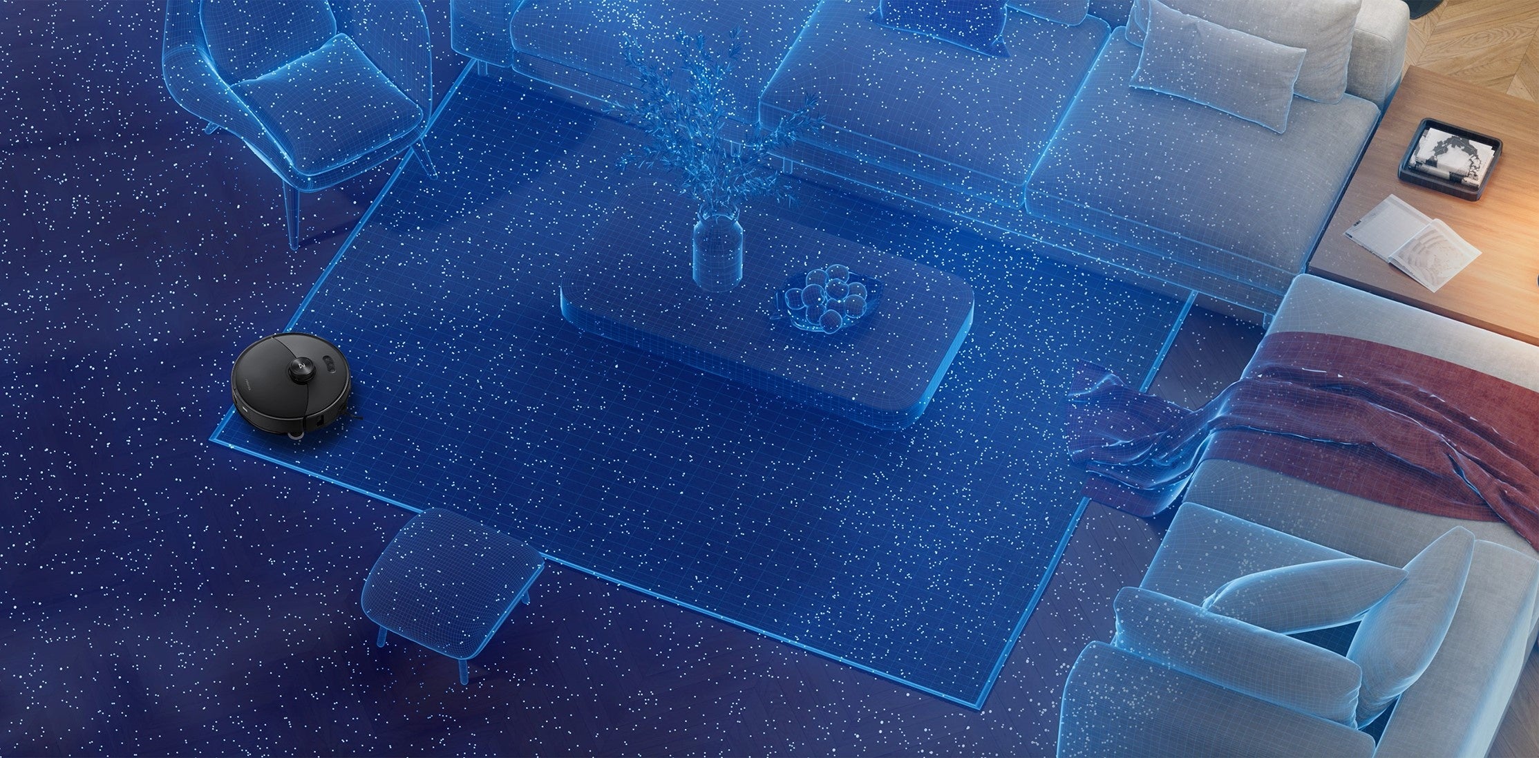 また、毎分300回転する高精度レーザーセンサーが部屋を掃除しながら360度スキャンすることで、部屋を素早くマッピングし、独自のアルゴリズムとともに効率的なルートで掃除を行います。さまざまなセンサーが連携し、家具や障害物を検知することで、段差からの落下や家具への挟まりを回避しながら部屋の中を隅々までスムーズに移動することができます。