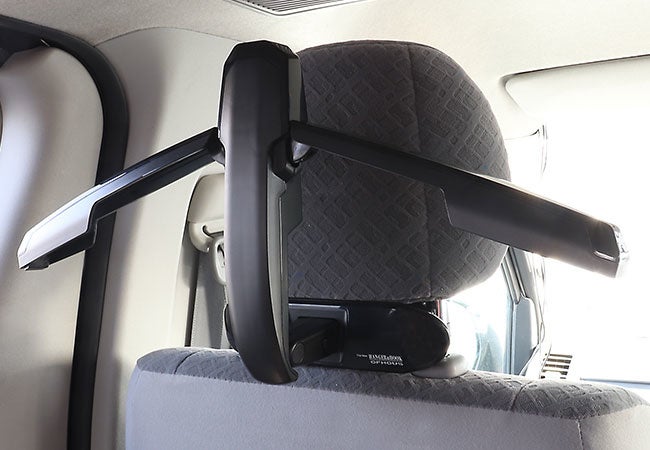 ヘッドレストに固定するだけ、工具不要で簡単取付。脱着式で使用しない時はハンガー部を簡単に取り外せます。スタイリッシュなデザインで、車内のインテリア性も損なうことはありません。