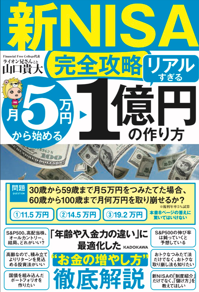 また、2023年11月9日に2冊目の著書『【新NISA完全攻略】月5万円から始める「リアルすぎる」1億円の作り方』を出版。予約受け付け中のAmazonで本総合1位を獲得。(2023/9/19) 発売1カ月で4万部を突破した。