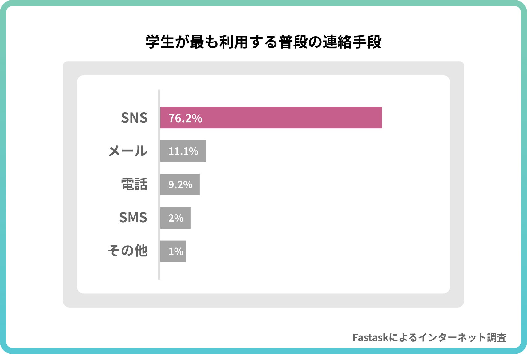 ②学生の約76%が「SNS」を日常の連絡手段として最も利用