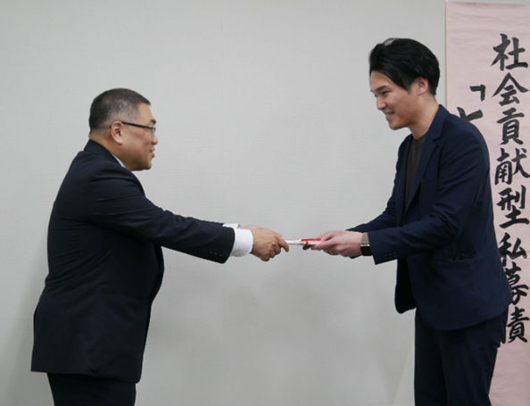 今回の寄贈は、三十三銀行が受託する『社会貢献型私募債「ともに、羽ばたく。」』をサンヴィレッジが発行したのに伴って行われました。『社会貢献型私募債「ともに、羽ばたく。」』は、発行に係る手数料の一部により、SDGsの目標達成に向けて取り組む組織・団体などに対して物品を寄贈するものです。
