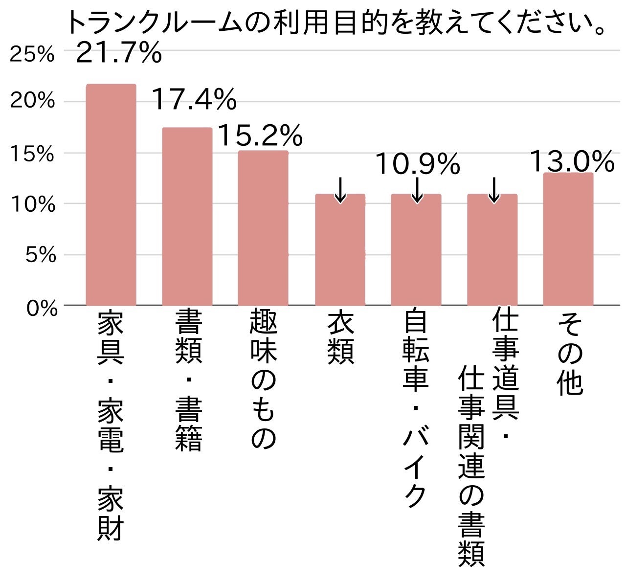 続いて、回答者がトランクルームをどう利用しているか、利用目的・収納内容を尋ねました。