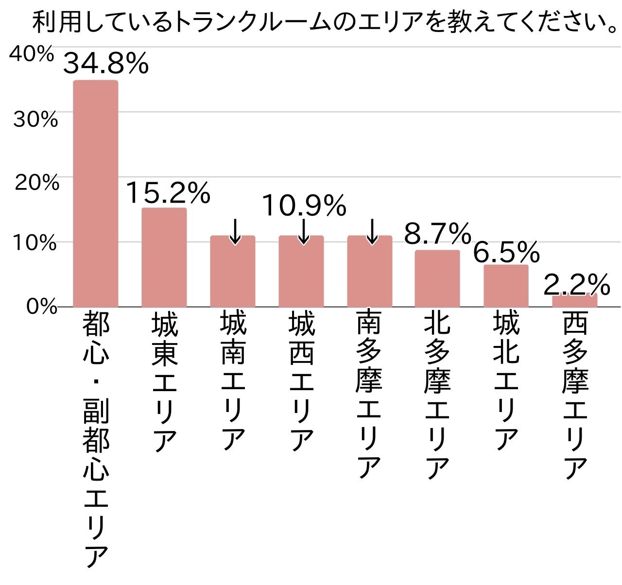アンケートでは次に、利用しているトランクルームがある地域(エリア)について尋ねました。