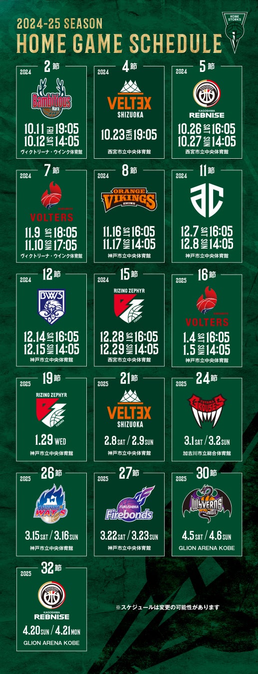 本日8月7日(水)より、神戸ストークス公式ファンクラブ「STORKS MEMBERS」有料会員の新シーズン入会受付を開始します。ホーム開幕戦は10月11日(金)、12日(土)バンビシャス奈良戦を予定します。新ホームアリーナ「GLION ARENA KOBE」での開催は、2025年4月5日(土)、6日(日) 第30節vs山形ワイヴァンズ、4月21日(土)、4月22日(日)第32節vs鹿児島レブナイズを予定しています。