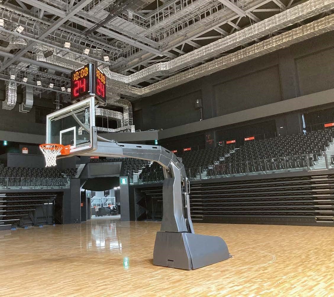 神戸ストークスの試合で使用されるバスケットゴールは、NBAの試合でも使用される世界水準のSPALDING社のゴールを採用。ストークスグリーンでカラーリングし、ホームゲームの一体感を醸成します。