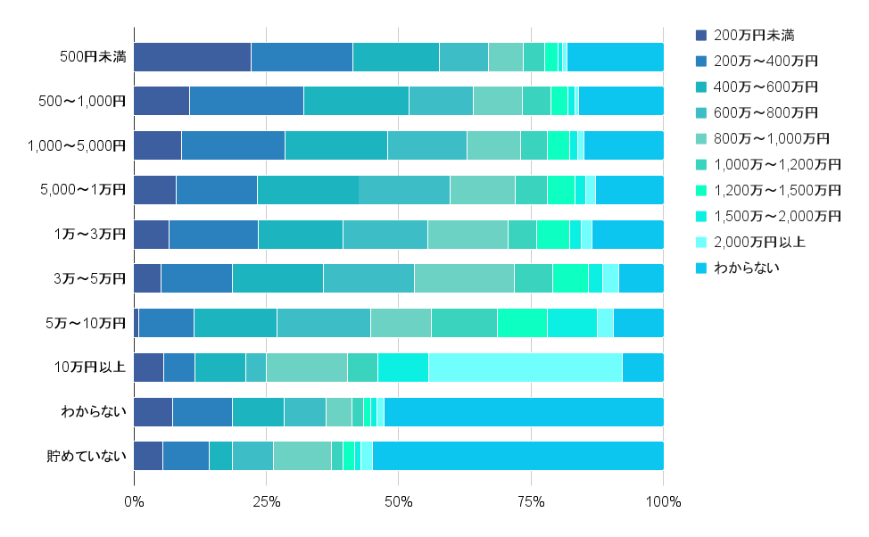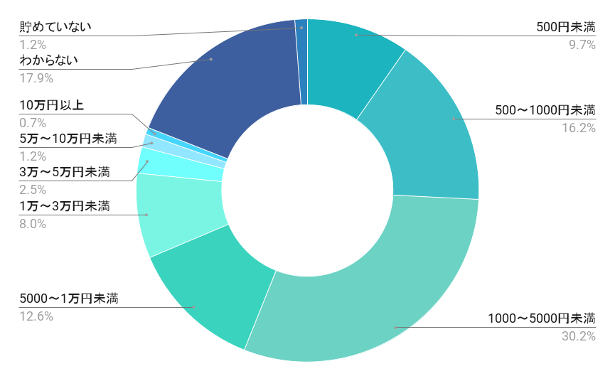 月間獲得ポイントについて調査したところ、500円未満相当は1割未満と少なく、一番多かったのは1,000〜5,000円未満相当。また、全体の12%以上が月間1万円以上相当獲得しており、中には月間5万円以上相当獲得していると答えた人もいた。