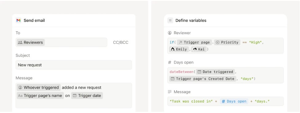 NotionとGmailのワークフローを連携、数式でアクションを詳細にカスタマイズ