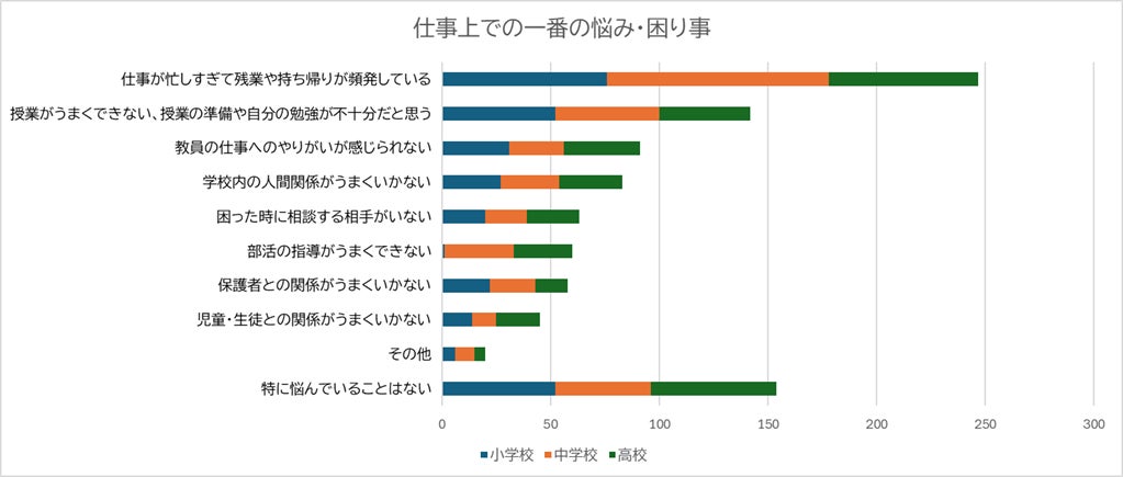 2023年にNOLTYプランナーズが全国の小学校・中学校・高校の教員を対象に実施した調査で、「仕事での一番の悩み・困り事」を聞いたところ、「仕事が忙しく持ち帰りなどが多い」という回答がトップで、教員の働き改革には依然として課題が残っていることが分かりました。さらに個別に実施したインタビューでは、「教員にとって非認知能力、対人スキルの学びの場は少ない」「利害関係のない第三者に相談できるのは安心」といった声も挙がったことから、匿名で先生同士が本音で交流でき、様々なスキルを学ぶサイトとして当コミュニティを開設しました。