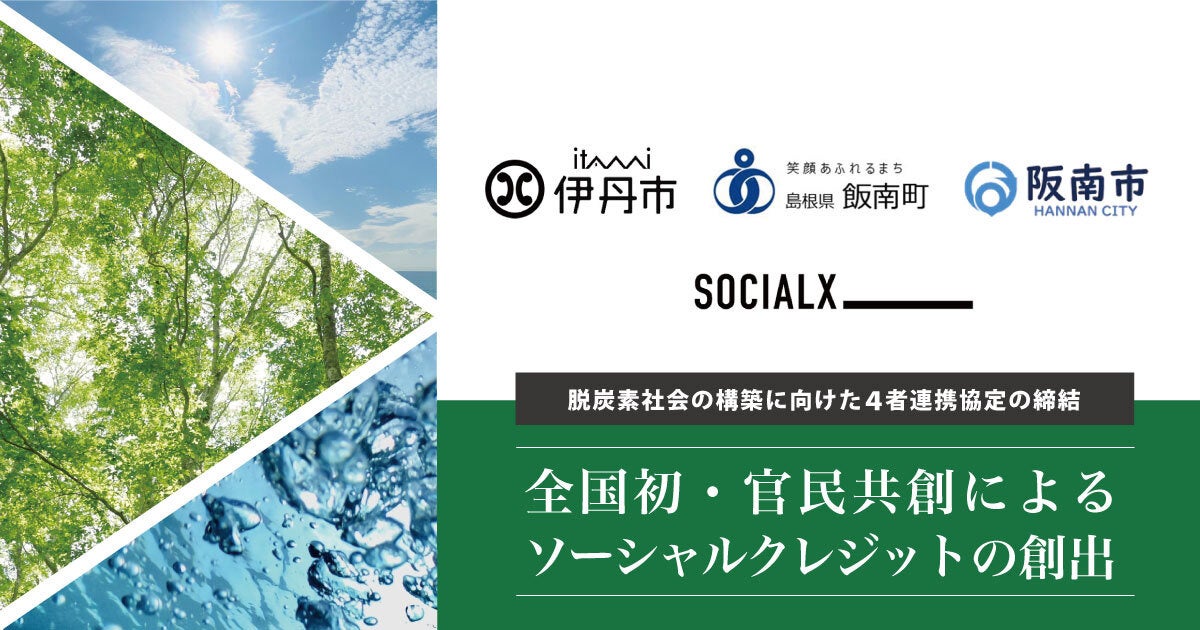 【ソーシャル・エックス】全国初!官民共創によるソーシャルクレジット創出 〜伊丹市・阪南市・飯南町と「脱炭素に向けた地域循環共生に関する協定」を締結〜