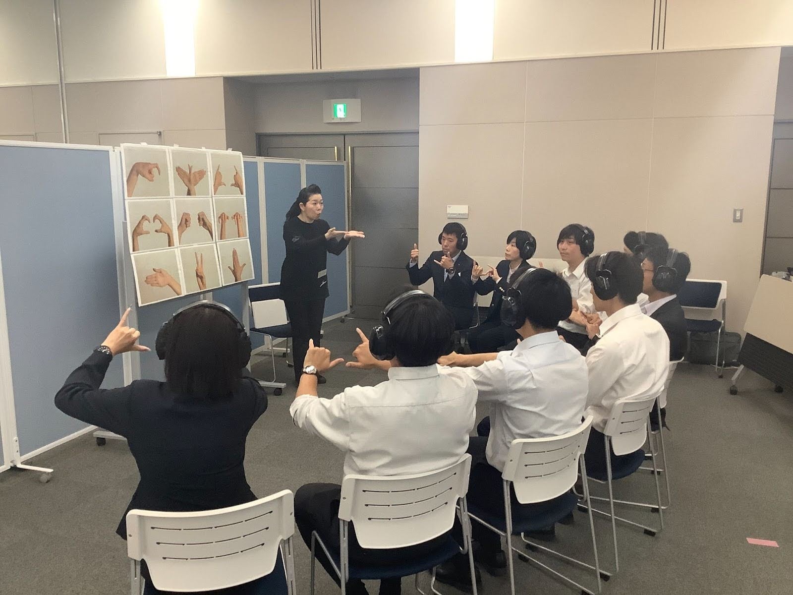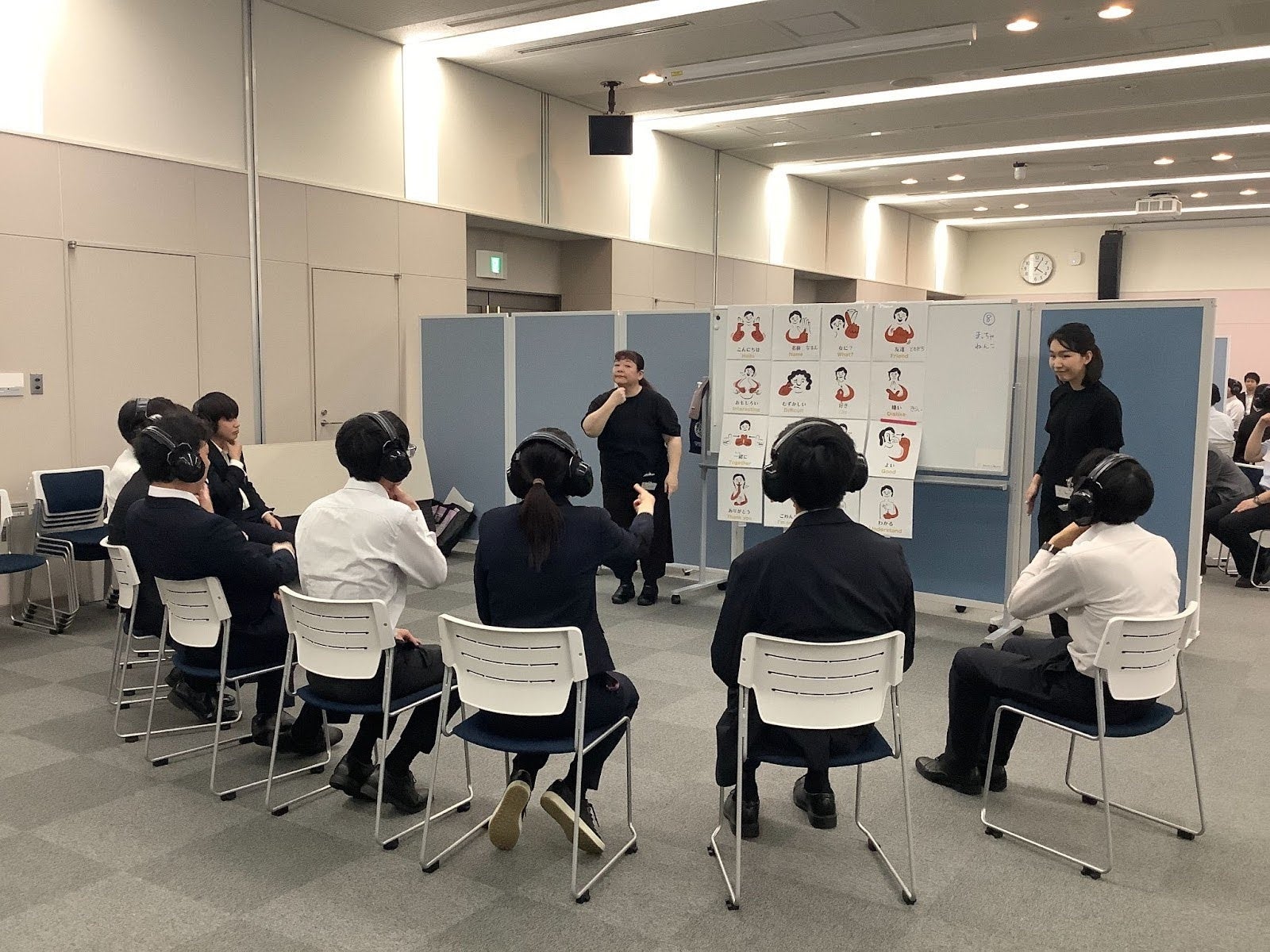 本研修では、参加者が8グループに分かれ、ヘッドセットを装着して“音のない世界”を体験。表情やジェスチャー、簡単な手話を用いながらコミュニケーションを図ることで、「伝える」ことの本質を探求しました。終了後のアンケートでは、98.6%という高い満足度を記録しています。