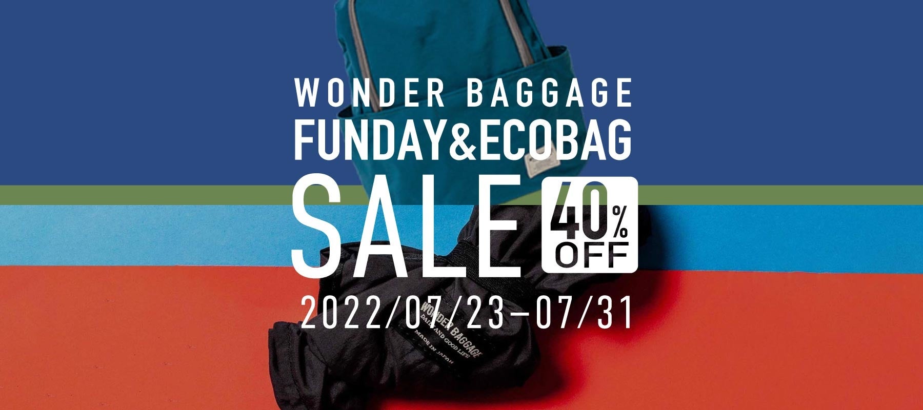 国産バッグブランドWONDER BAGGAGE、FUNDAYシリーズ、およびECO BAGを、定価より40%OFF。